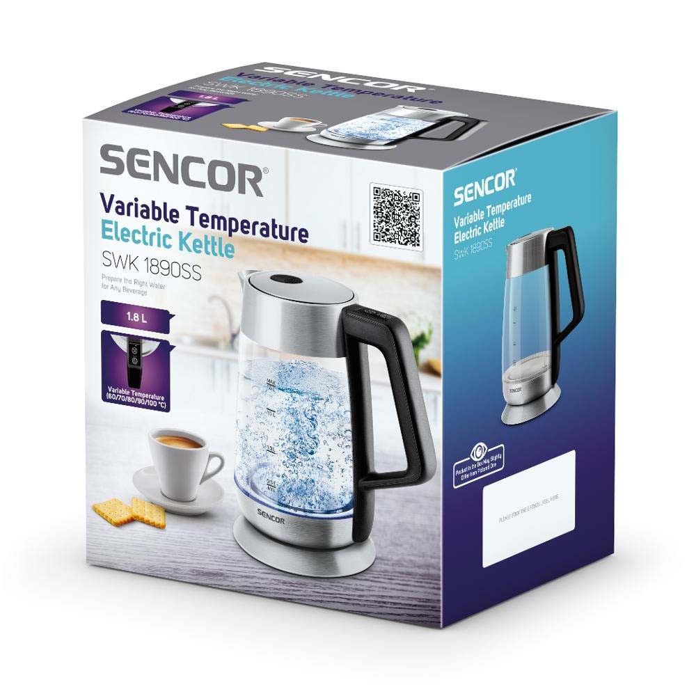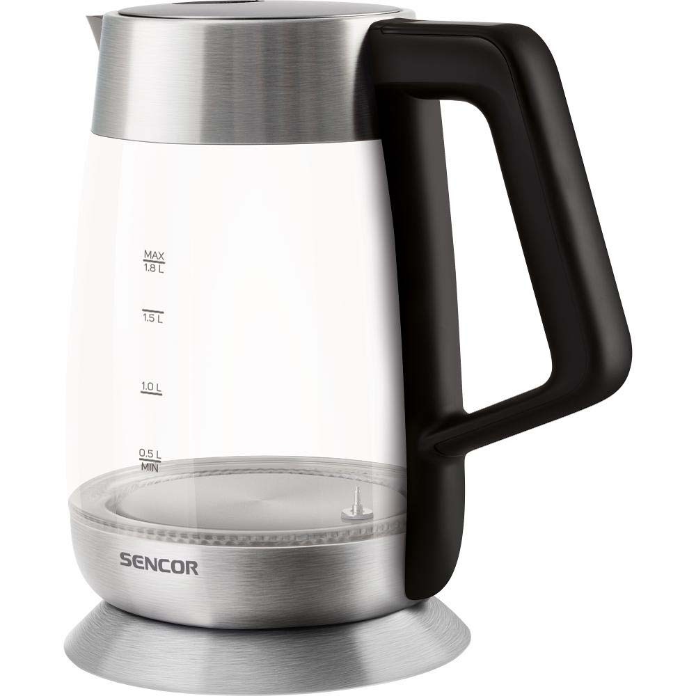 Βραστήρας με Γυάλινη Κανάτα και Επιλογή Θερμοκρασίας 2lt 2200W Glass Sencor SWK 1890SS Ασημί