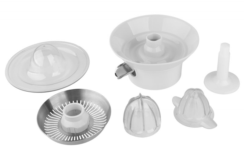 Ανάλογα με το μέγεθος του επεξεργασμένου φρούτου, επιλέγετε ένα από τα δύο μεγέθη πίεσης. Το προϊόν περιλαμβάνει σουρωτήρι και καπάκι από ανοξείδωτο χάλυβα. Το εξάρτημα είναι απλό και γρήγορο για να συναρμολογηθεί και θα εκτιμήσετε τη δυνατότητα πλυσίματος στο πλυντήριο πιάτων.