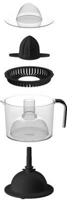 Φρέσκος χυμός γεμάτος βιταμίνεςΜε την πρέσα εσπεριδοειδών Concept CE3541, μπορείτε να απολαύσετε φρέσκο χυμό εσπεριδοειδών γεμάτο βιταμίνες εύκολα και όποτε θέλετε. Απλώς τοποθετήστε τα μισά εσπεριδοειδή στον κώνο πίεσης και σπρώξτε προς τα κάτω. Πατώντας τον κώνο πίεσης, η συσκευή ενεργοποιείται αυτόματα. |