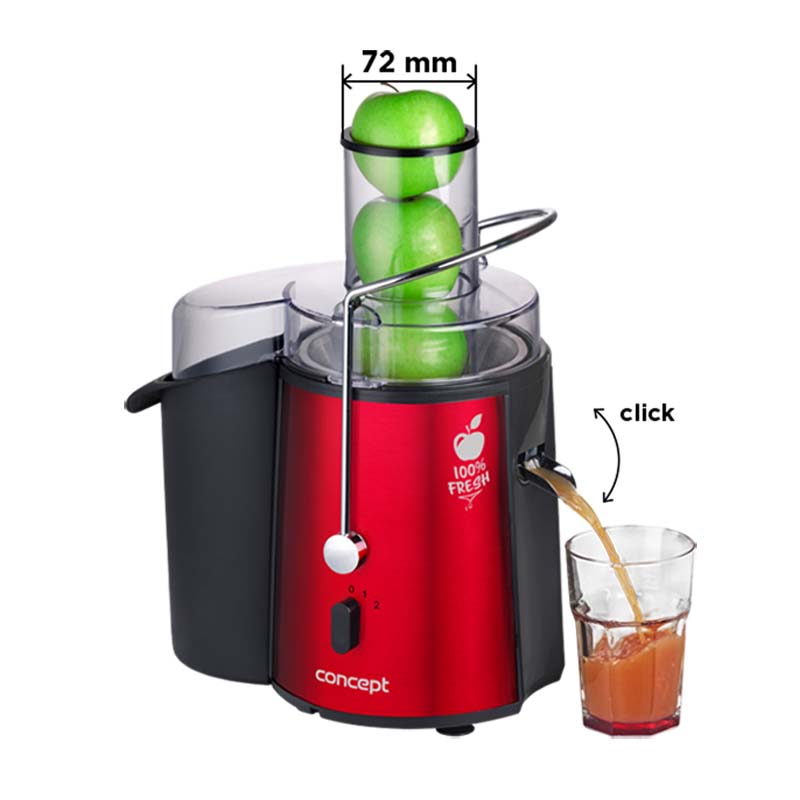 XXL τρύπα πλήρωσηςΈχετε κουραστεί να ξοδέψετε όλο τον χρόνο σας στην κουζίνα; Θέλετε καθημερινά υγιεινό φρέσκο χυμό στο τραπέζι σας; Έτσι, για εσάς είναι μόνο ο αποχυμωτής φρούτων και λαχανικών από τη Concept. Χάρη στη μεγάλη τρύπα πλήρωσης 72 mm, μπορείτε να εξοικονομήσετε πολύ χρόνο. Δεν χρειάζεται να καθυστερήσετε με το περιττό κόψιμο φρούτων, μπορεί να χειριστεί ολόκληρα φρούτα. |