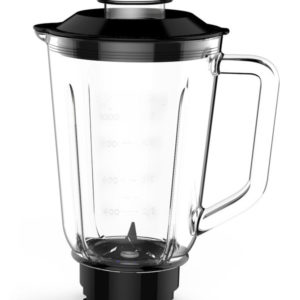 Εκτός από μια μεγάλη φιάλη των 0,6 λίτρων, έχετε ένα μικρότερο μπουκάλι φιάλη των 0,4 λίτρων και μία γυάλινη κανάτα 1 λίτρου για την ανάμιξη μεγαλύτερου όγκου πρώτων υλών. Η κανάτα είναι εξοπλισμένη με αφαιρούμενο κάλυμμα που σας επιτρέπει να ξαναγεμίζετε με υλικά, χωρίς να χρειάζεται να αφαιρείτε το καπάκι.