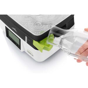 Το ETA Calderon II είναι εύκολο στη συναρμολόγηση και τη χρήση. Η ένδειξη σας δείχνει την τρέχουσα ποσότητα νερού – εάν είναι απαραίτητο, μπορείτε εύκολα και με ασφάλεια να το ξαναγεμίσετε από το εξωτερικό του ατμομάγειρα. Οι συμπυκνωμένοι υδρατμοί συλλέγονται στον ενσωματωμένο δίσκο συλλογής υγρών.