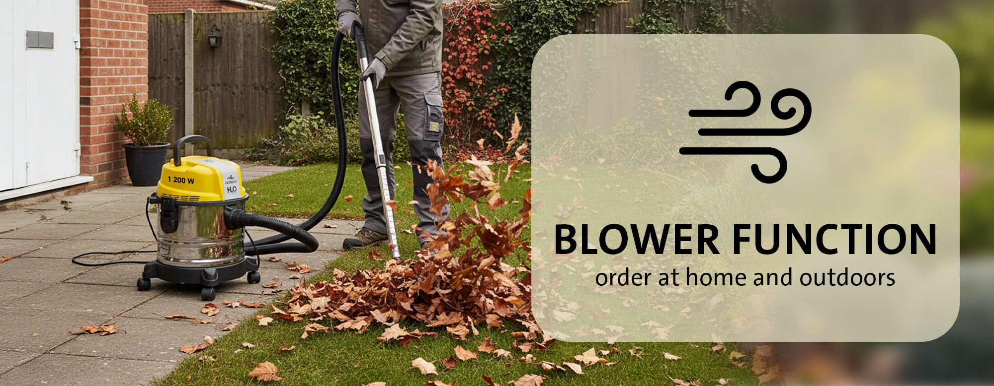 Με τη λειτουργία φυσητήρα, μπορείτε εύκολα να φυσήξετε τα πεσμένα φύλλα από το μονοπάτι ή τον κήπο ή να φυσήξετε τη σκόνη από τον εξοπλισμό. Το ETA Fachmann μπορεί επίσης να χρησιμοποιήσει τον φυσητήρα του για να φουσκώσει τον εξοπλισμό πισίνας και τις φουσκωτές πισίνες σε μια στιγμή.