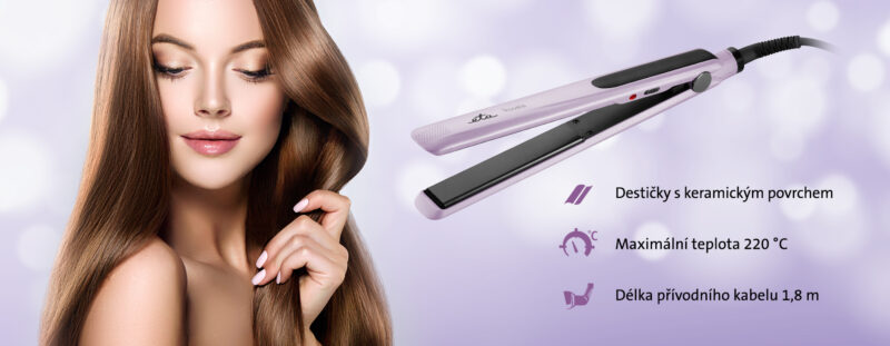 Ο μοβ σχεδιασμός της ισιωτικής πρέσας μαλλιών ETA Rosalia αντιστοιχεί απόλυτα στην ευαισθησία και την κομψότητα με την οποία φροντίζει τα μαλλιά σας. Πλάκες με ελατήρια με κεραμική επιφάνεια προσκολλούνται τέλεια στα μαλλιά, έτσι ώστε να ισιώνονται γρήγορα και αποτελεσματικά. Επίσης αυτό βοηθά στην αυτόματη διατήρηση σταθερής θερμοκρασίας, η οποία φθάνει περίπου 220°C . Χάρη στους θερμαντήρες PTC , η ισιωτική θερμαίνεται σε ελάχιστο χρόνο.