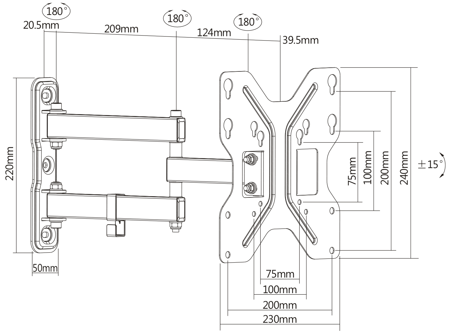 - Universal, VESA για απόσταση οπών 75×75. 100×100; 200×100; 200×200 mm