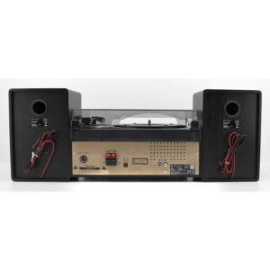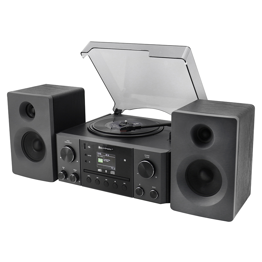 Το μικροσύστημα Soundmaster με πικάπ είναι εξοπλισμένο με χρήσιμες λειτουργίες που θα βελτιώσουν τη συνολική εμπειρία χρήστη. Περιλαμβάνει υποδοχή USB , ώστε να μπορείτε να αναπαράγετε περιεχόμενο από εξωτερικές συσκευές αποθήκευσης δεδομένων. Τα μεγάλα πλεονεκτήματά του περιλαμβάνουν τη δυνατότητα ακρόασης μέσω ακουστικών, ώστε να μπορείτε να απολαμβάνετε μουσική στο έπακρο χωρίς να ενοχλείτε τους άλλους. Χάρη στην κεραία, το μικροσύστημα λαμβάνει σήματα υψηλής ποιότητας και με ελάχιστες παρεμβολές για βελτίωση της ποιότητας ακρόασης. Θα έχετε υποδοχή RCA/Cinch για μετάδοση αναλογικών ηχητικών σημάτων από εξωτερικές πηγές. Εάν χάσετε το αγαπημένο σας τραγούδι, δεν υπάρχει πρόβλημα να το ηχογραφήσετε για να το ακούσετε αργότερα. Με τη λειτουργία εγγραφής, μπορείτε να δημιουργήσετε τις δικές σας μουσικές συλλογές. Η επιλογή τηλεχειριστηρίου συμβάλλει στη μέγιστη μουσική άνεση και ευκολία χρήσης. Το μικροσύστημα Soundmaster ταιριάζει απόλυτα σε έναν χώρο όπου δεν υπάρχει αρκετός χώρος για μεγάλο ηχητικό εξοπλισμό.