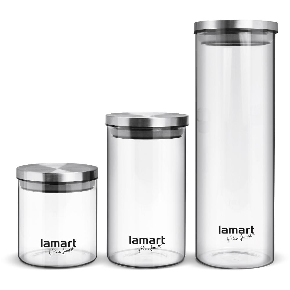 Σετ Αποθήκευσης Γυάλινων Δοχείων με Ανοξέιδωτο Καπάκι 3τεμ. 650/950/1700ml Lamart LT6025