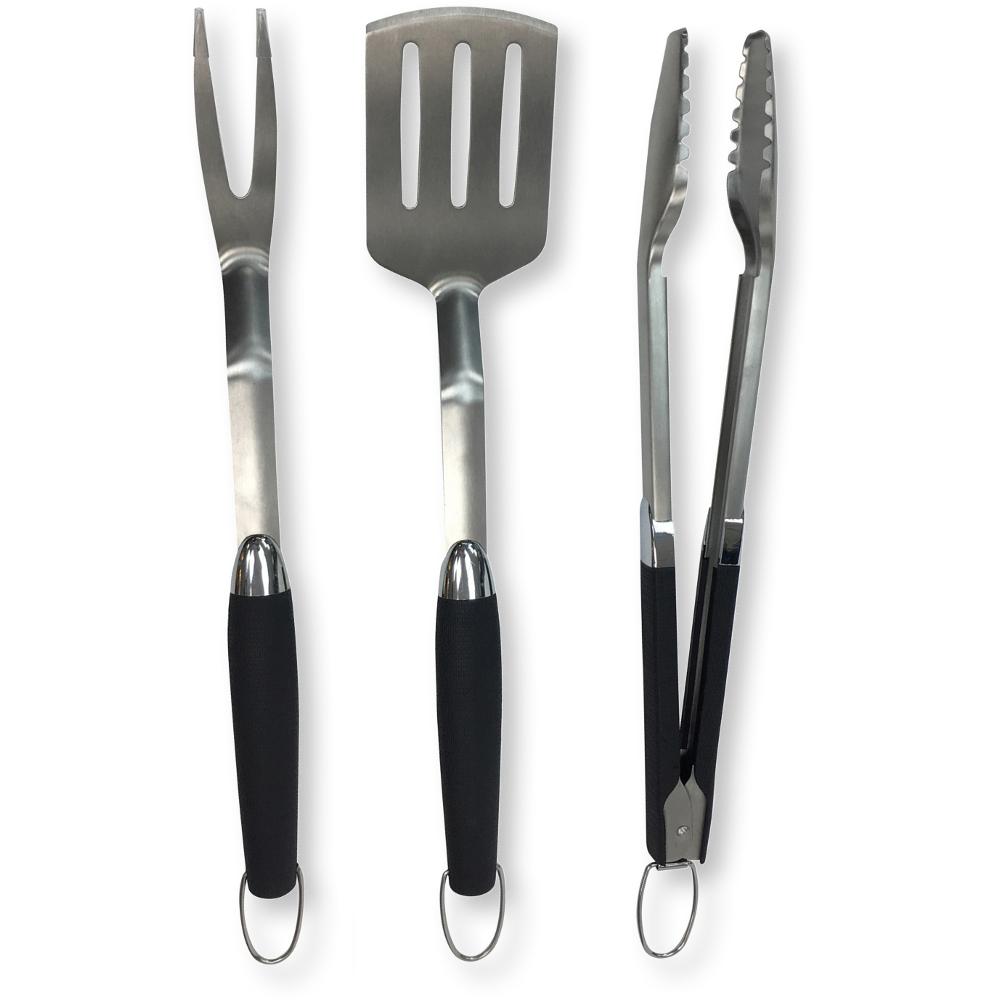 Σετ Εργαλείων Grill Fieldmann FZG 9017 3 Τεμ. με Πιρούνα, Σπάτουλα και Τσιμπίδα απο Ανοξείδωτο Ατσάλι και Προστατευτικές Λαβές
