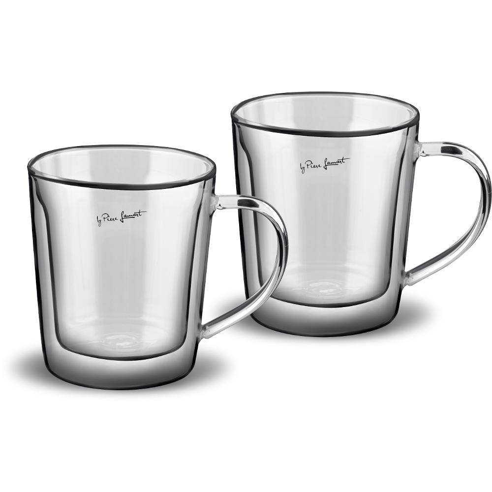 Σετ Φλιτζάνια Καφέ Γυάλινα με Χερούλι & Διπλό Τοίχωμα 350ml VASO Lamart LT9036 Διάφανο 2τεμ.