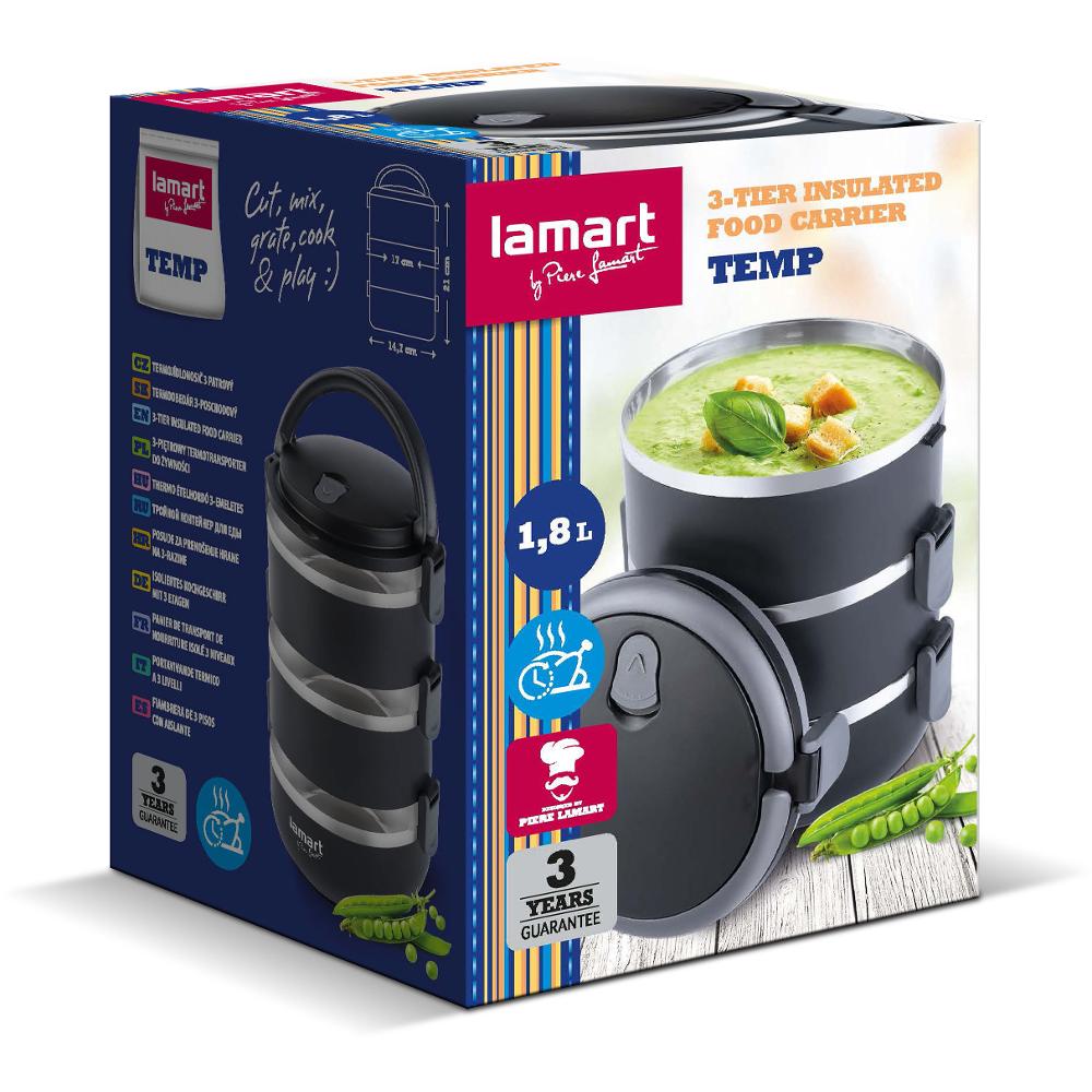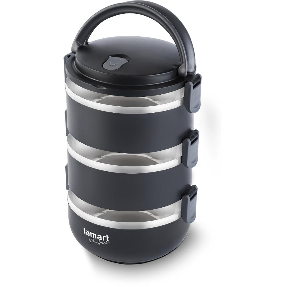 Φαγητοδοχείο Lunchbox 3 Επιπέδων Χωρητικότητας 1,8lt Thermo Lamart LT6023 Μαύρο
