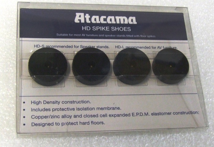 Τα πιατάκια ακίδων Atacama υψηλής πυκνότητας είναι κατασκευασμένα από κράμα χαλκού / κράματος ψευδαργύρου και διαθέτουν μια οπή στην επάνω επιφάνεια για να εντοπίσουν την ακίδα και στην κάτω επιφάνεια τους μια ελαστομερής μεμβράνη EPDM που δεν είναι ολισθαίνουσα και έχει σχεδιαστεί για να προστατεύει τις λεπτές επενδύσεις δαπέδου και την υγρασία. Κάθε πιατάκι ακίδων έχει διάμετρο 25mm, καθιστώντας το HD-L κατάλληλο για τις περισσότερες βάσεις ηχείων και εφαρμογές Hifi rack με συνολικό μέγιστο βάρος σε όλα τα τέσσερα πιατάκια 125kg. Διατίθενται σε δύο χρώματα, μαύρο σατέν ή νικέλιο.