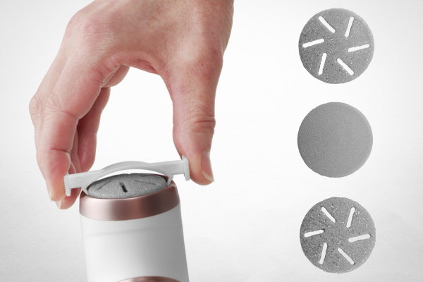 Αφαιρούμενα εναλλάξιμα εξαρτήματαΗ ηλεκτρική λίμα ποδιών Concept PN3000 είναι εξοπλισμένη με 3 αφαιρούμενα εξαρτήματα για διαφορετικούς τύπους περιποίησης. Το λεπτό εξάρτημα είναι κατάλληλο για τη θεραπεία ευαίσθητων επιφανειών , το μεσαίο είναι ιδανικό για καθημερινή χρήση και το χονδρόκοκκο για ξηρό και σκληρυμένο δέρμα . Οι τρύπες στο εσωτερικό των προσαρτημάτων χρησιμεύουν για την απορρόφηση του επεξεργασμένου δέρματος. |