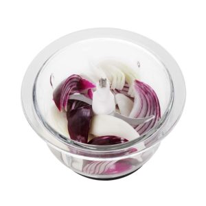 Απλή λειτουργία και συντήρησηΗ λειτουργία του πολυκόφτη είναι πολύ απλή και διαισθητική. Απλά κλείστε το γεμάτο δοχείο με το καπάκι, συνδέστε τον κινητήρα και επιλέξτε την ταχύτητα κοπής. Προσφέρει 2 ταχύτητες που μπορείτε εύκολα να ρυθμίσετε ανάλογα με τις τρέχουσες ανάγκες σας. Ο πυθμένας του δοχείου είναι εξοπλισμένος με ένα αντιολισθητικό μαξιλαράκι που εξασφαλίζει μέγιστη σταθερότητα κατά τη λειτουργία. Αφού ολοκληρωθεί η εργασία, ο πολυκόφτης είναι εύκολο να αποσυναρμολογηθεί και να πλυθεί. |