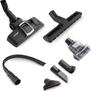 Πάντα στο χέριΟ βασικός εξοπλισμός περιλαμβάνει επίσης μικρά αξεσουάρ, τα οποία τοποθετούνται έξυπνα σε μια πρακτική βάση πάνω στον τηλεσκοπικό σωλήνα της ηλεκτρικής σκούπας. Αυτά περιλαμβάνουν ένα ακροφύσιο με σχισμές για τον καθαρισμό δυσπρόσιτων χώρων (καλοριφέρ, συρτάρια, ο χώρος μεταξύ στρωμάτων και ταπετσαριών κ.λπ.), ένα ακροφύσιο με βούρτσα για απαλή αφαίρεση σκόνης από έπιπλα, περσίδες, περβάζια παραθύρων, βιβλία ή πληκτρολόγια και ακροφύσιο ταπετσαρίας με το οποίο μπορείτε να καθαρίζετε καναπέδες, πολυθρόνες, στρώματα και κρεβάτια. |
