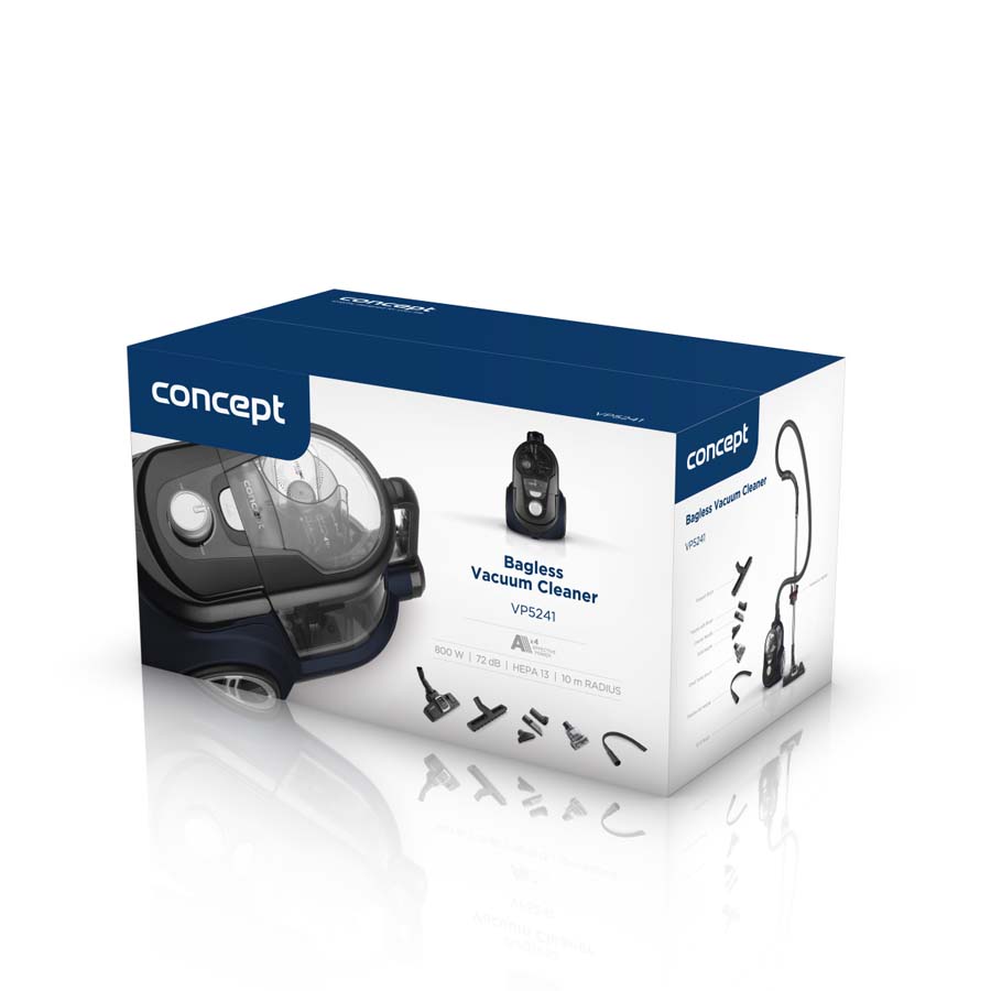 Δύναμη κυκλώναΗ ηλεκτρική σκούπα χωρίς σακούλα είναι εξοπλισμένη με έναν πολύ αποδοτικό κινητήρα ECO με ισχύ 800W, ο οποίος έχει επαρκή ισχύ για τέλειο καθαρισμό ολόκληρου του νοικοκυριού. Μπορείτε εύκολα να ρυθμίσετε την ισχύ αναρρόφησης χάρη στον ηλεκτρονικό έλεγχο. Το κυκλωνικό σύστημα αποτελείται από μια φυγοκεντρική δύναμη που δρα στις ακαθαρσίες κατά την περιστροφή του αέρα εξαγωγής και την επακόλουθη φυγοκέντρησή τους σε ένα δοχείο συλλογής. Το κύριο πλεονέκτημα των ηλεκτρικών σκουπών κυκλώνα είναι η απουσία σακούλας και η σταθερή τους ισχύς κατά την ηλεκτρική σκούπα. Επιπλέον, δεν υπάρχει στροβιλισμός σκόνης κατά τον καθαρισμό. Το πλενόμενο φίλτρο HEPA 13 συλλαμβάνει ακόμη και τα καλύτερα σωματίδια σκόνης, επομένως είναι επίσης κατάλληλο για άτομα που πάσχουν από αλλεργίες και ασθματικούς. |