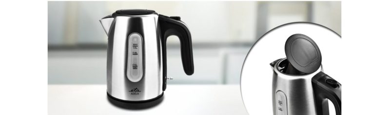 Ο συνδυασμός ανοξείδωτου και μαύρου χρώματος θα ταιριάζει σε κάθε κουζίνα. Η μικρή κανάτα ETA Adela, με μέγιστη κατανάλωση 1600 W, θερμαίνει μέχρι 1 λίτρο νερού. Έχει υδατογράφημα διπλής όψης, φωτεινό σηματοδότη και κρυφό θερμαντήρα. Η εργονομικά διαμορφωμένη λαβή έχει ένα κουμπί για να ανοίγει το καπάκι. Στη βάση υπάρχει χώρος για την περιέλιξη του καλωδίου τροφοδοσίας, έτσι ώστε να μην παρεμβαίνει σε τίποτα στην κουζίνα ή να χαλάει τη συνολική εικόνα του χώρου.