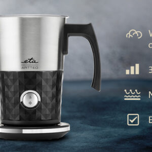 Γίνετε ένας οικιακός barista με τον ηλεκτρικό αφροποιητή γάλακτος ETA Artteo. Με ισχύ 550W , είναι ιδανικός για την προετοιμασία των αγαπημένων σας καφέδων με βάση το γάλα, όπως καπουτσίνο ή καφέ λάτε. Ο συνολικός όγκος του δοχείου είναι 300 ml και σας προσφέρει 3 τρόπους χρήσης.