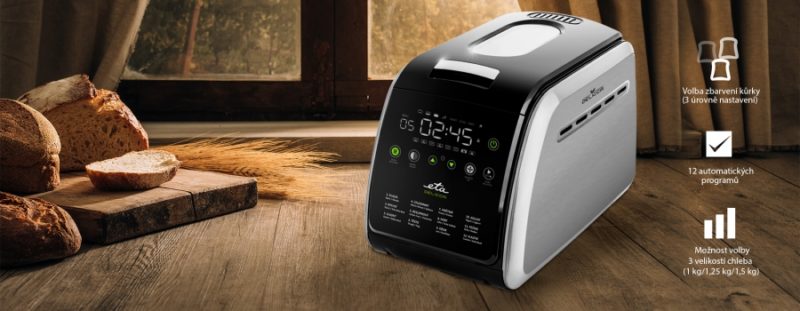 Ωστόσο, εάν θέλετε να έχετε τα πάντα υπό έλεγχο, ο ETA Delicca II θα χαρεί να προσαρμοστεί σε εσάς. Απλώς επιλέξτε το πρόγραμμα CUSTOM, το οποίο επιτρέπει μεμονωμένες ρυθμίσεις μεμονωμένων σταδίων προετοιμασίας ψωμιού. Μπορείτε να επιλέξετε το επιθυμητό μέγεθος ψωμιού (1 kg / 1,25 kg / 1,5 kg) και να επιλέξετε ανάμεσα σε 3 επίπεδα χρώματος κρούστας . Μια πρακτική λειτουργία είναι επίσης η καθυστερημένη εκκίνηση , η οποία θα σας επιτρέψει τέλειο χρονοδιάγραμμα – το φρέσκο και τραγανό ψωμί μπορεί να σας περιμένει μετά από την εργασία σας ή να κάνει το έντονο πρωινό σας και τα σαββατοκύριακο πιο ευχάριστο με μυρωδιές φρασκοψημένου ψωμιού.