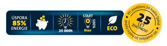 Οι λαμπτήρες LED είναι φιλικοί προς το περιβάλλον, δεν περιέχουν υδράργυρο ή μόλυβδο και δεν αλλάζουν την χρωματική απόχρωση με την πάροδο του χρόνου . Λειτουργούν επίσης υπό ακραίες συνθήκες θερμοκρασίας (-40 έως + 60 ° C).