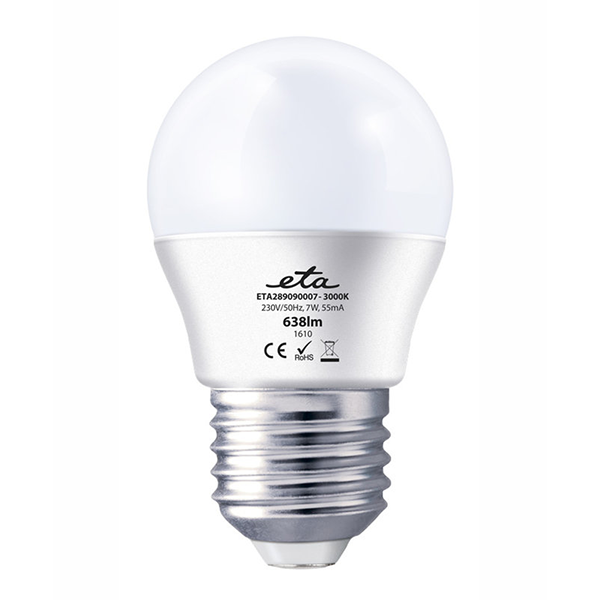 είναι γαλακτώδης λυχνία LED 7W με υποδοχή E27 και τάση εισόδου 230V. 638 Lm με γωνία φωτεινότητας 160 °. Το φως του είναι ανάμεσα στο ζεστό λευκό (3000K) και αποτελεί εναλλακτική λύση για τον κλασικό λαμπτήρα 50W. Οι διαστάσεις των λαμπτήρων είναι 45×79 mm.