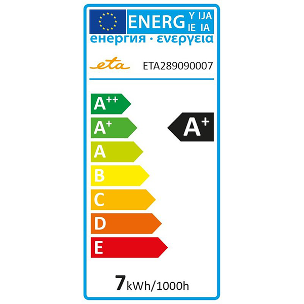 Σε σύγκριση με τους συμβατικούς λαμπτήρες, ο λαμπτήρας ETA LED μπορεί να εξοικονομήσει έως και το 90% της κατανάλωσης ενέργειας χάρη στη χαμηλή κατανάλωση ενέργειας. Κατηγοριοποιούνται ως Α +.