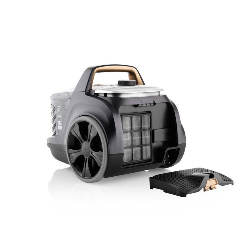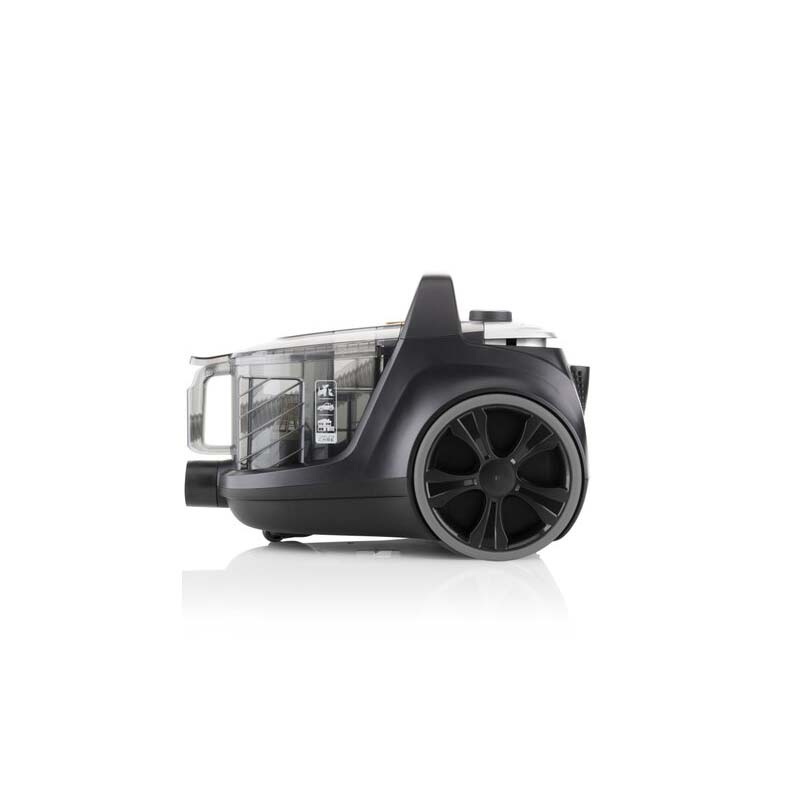 Ο περιστρεφόμενος μπροστινός τροχός 360° εξασφαλίζει την ομαλή λειτουργία κατά τον καθαρισμό. Η ακτίνα δράσης των 9 μέτρων εξασφαλίζει πρόσβαση σε όλες τις γωνίες των συνηθισμένων νοικοκυριών και το καλώδιο τροφοδοσίας τυλίγεται αυτόματα με το πάτημα ενός κουμπιού.