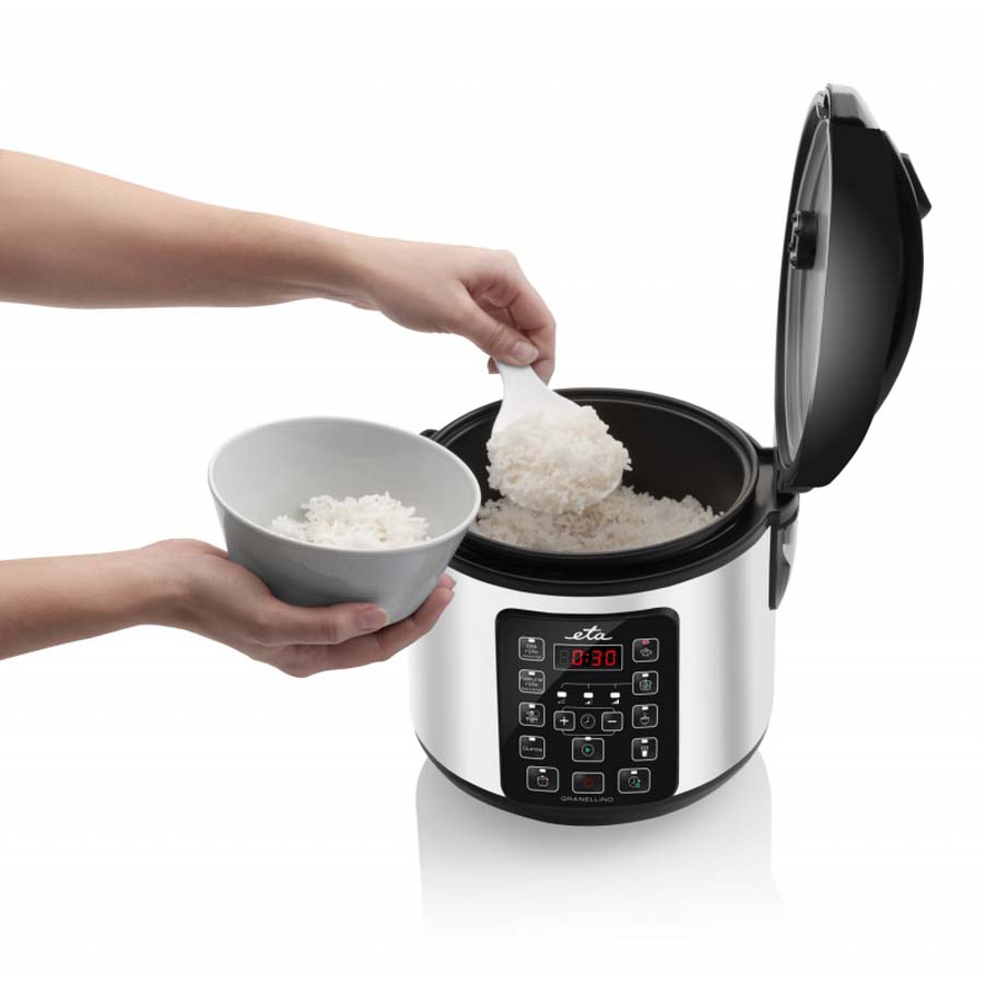 Το μαγείρεμα ρυζιού δεν ήταν ποτέ τόσο εύκολο. Με την πολυλειτουργική συσκευή ρυζιού ETA Granellino, θα έχετε τέλεια μαγειρεμένο ρύζι κάθε φορά, επιπλέον, σχεδόν χωρίς την βοήθειά σας. Το ETA Granellino φροντίζει τα πάντα μόνη του, χάρη στην πλήρως αυτόματη λειτουργία. Μετά το μαγείρεμα, διατηρεί επίσης τη θερμοκρασία έως και 12 ώρες .