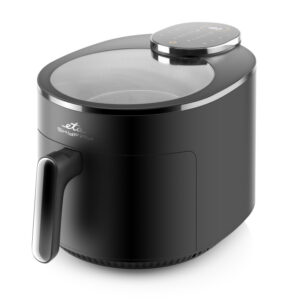 Απολαύστε τηγανητές λιχουδιές χωρίς τύψεις! Η φριτέζα θερμού αέρα ETA Skyfry με πρακτικό διαφανές κάλυμμα “τηγανίζει” το φαγητό χρησιμοποιώντας θερμό αέρα ομοιόμορφα από όλες τις πλευρές. Χάρη στο μεγάλο δοχείο 5 λίτρων με σχάρα τηγανίσματος, μπορείτε να ετοιμάσετε ζουμερές μπριζόλες κοτόπουλου, χρυσαφένιες τηγανητές πατάτες, σπιτικά φαλάφελ και τραγανά λαχανικά – με ελάχιστη προσθήκη λίπους .