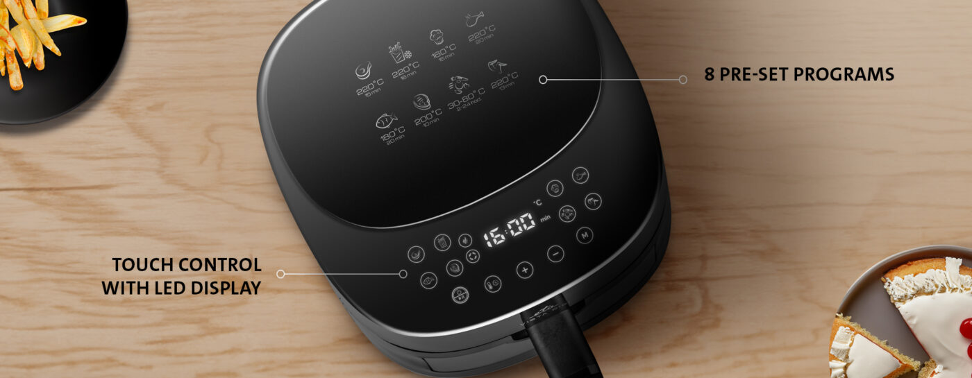Χάρη στον έλεγχο αφής, η χρήση της φριτέζας είναι πολύ εύκολη και η οθόνη LED σας δείχνει πάντα τη ρυθμισμένη θερμοκρασία. Ένα πρακτικό gadget είναι το παράθυρο προβολής στο μπροστινό μέρος του δοχείου αλλά και ο εσωτερικός φωτισμός, χάρη στα οποία μπορείτε εύκολα και γρήγορα να ελέγξετε την προετοιμασία του φαγητού. Επιπλέον, δεν χρειάζεται να ανοίξετε το δοχείο κατά το μαγείρεμα και να χάσετε άσκοπα τη θερμοκρασία.