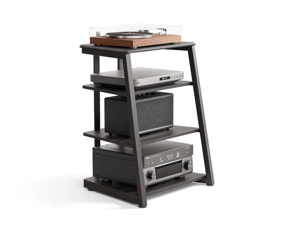 Επιπλέον, αυτή η στερεοφωνική βάση 4 επιπέδων είναι προσεκτικά σχεδιασμένη με δύο ελεύθερα ρυθμιζόμενα ράφια από laminate , για να φιλοξενεί εξοπλισμό διαφορετικού ύψους. Μπορείτε να μετακινήσετε το κεντρικό ράφι προς τα πάνω κατά 44,3 mm για να κάνετε την απόσταση 284,3 mm .