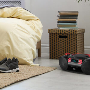 Η συσκευή αναπαραγωγής προσφέρει επίσης ένα σύγχρονο ραδιοφωνικό δέκτη DAB + . Ωστόσο, υπάρχει επίσης ένας κλασικός δέκτης FM . Και για τους σταθμούς DAB + και FM, μπορούν να συντονιστούν και να αποθηκευτούν έως και 30 προεπιλογές . Η τηλεσκοπική κεραία εγγυάται καθαρή λήψη ραδιοφωνικού σήματος . Ο συντονισμός, όπως και όλες οι άλλες ρυθμίσεις, είναι εύκολος και ξεκάθαρος – χάρη στην οθόνη LCD δύο γραμμών και τα κουμπιά διαγραφής στο μπροστινό μέρος της συσκευής.