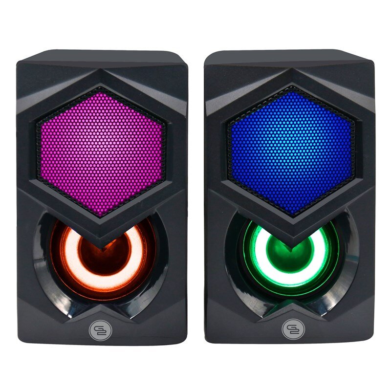 System 2.0, ισχύς εξόδου 2x 3W, φωτισμός RGB, τροφοδοτικό USB, είσοδος ήχου Jack 3,5 mm, χρώμα μαύρο