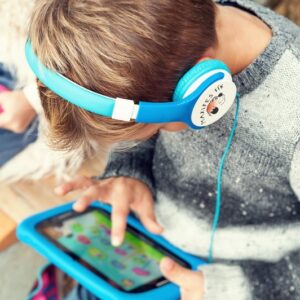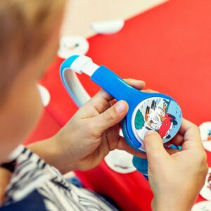 Παιδικά ακουστικά, περιορισμός έντασης 90 dB, δυνατότητα αλλαγής αυτοκόλλητου, εύρος συχνοτήτων 20Hz-20.000 Hz, μήκος καλωδίου 1,2 m, στερεοφωνικό βύσμα 3,5 mm
