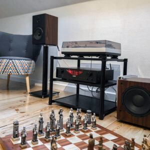 • Κομψό και ανθεκτικό, υψηλής ποιότητας περίβλημα, επενδυμένο με υψηλής ποιότητας απομίμηση ξύλου PVC, με μαύρο ματ μπροστινό πάνελ.