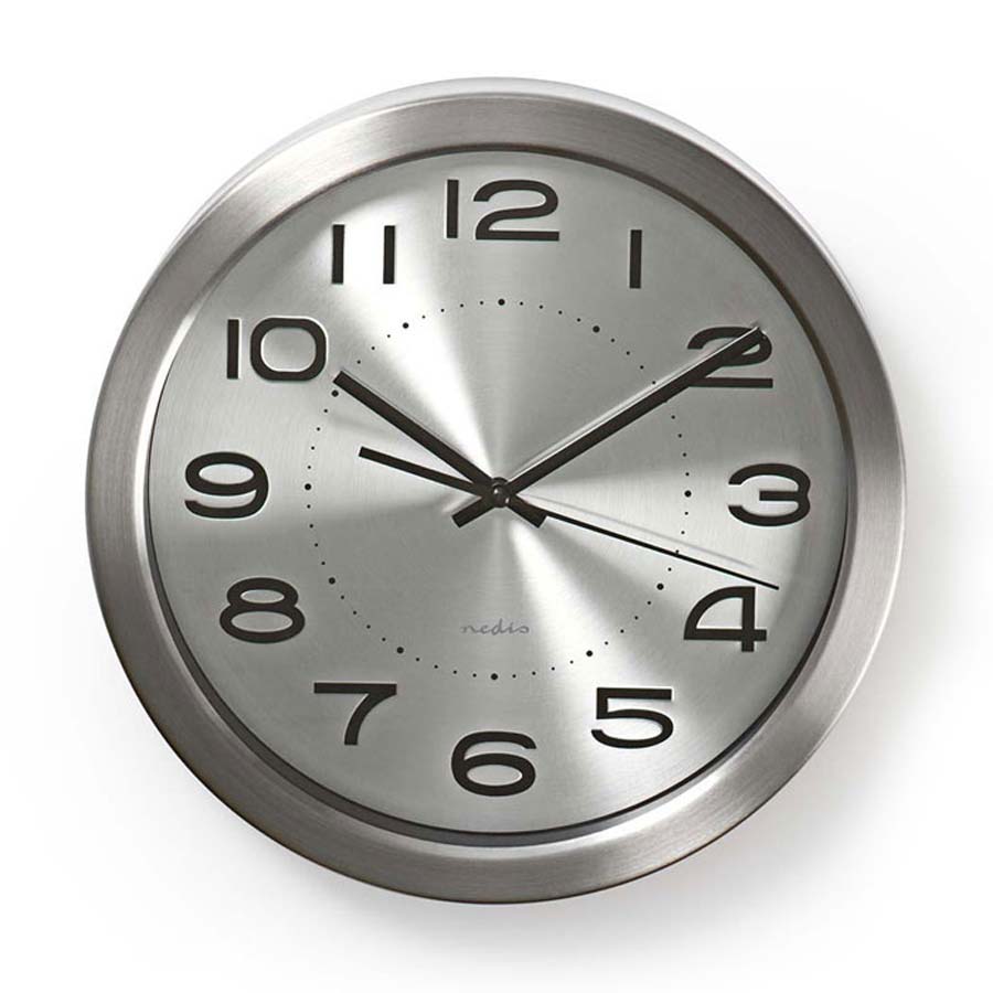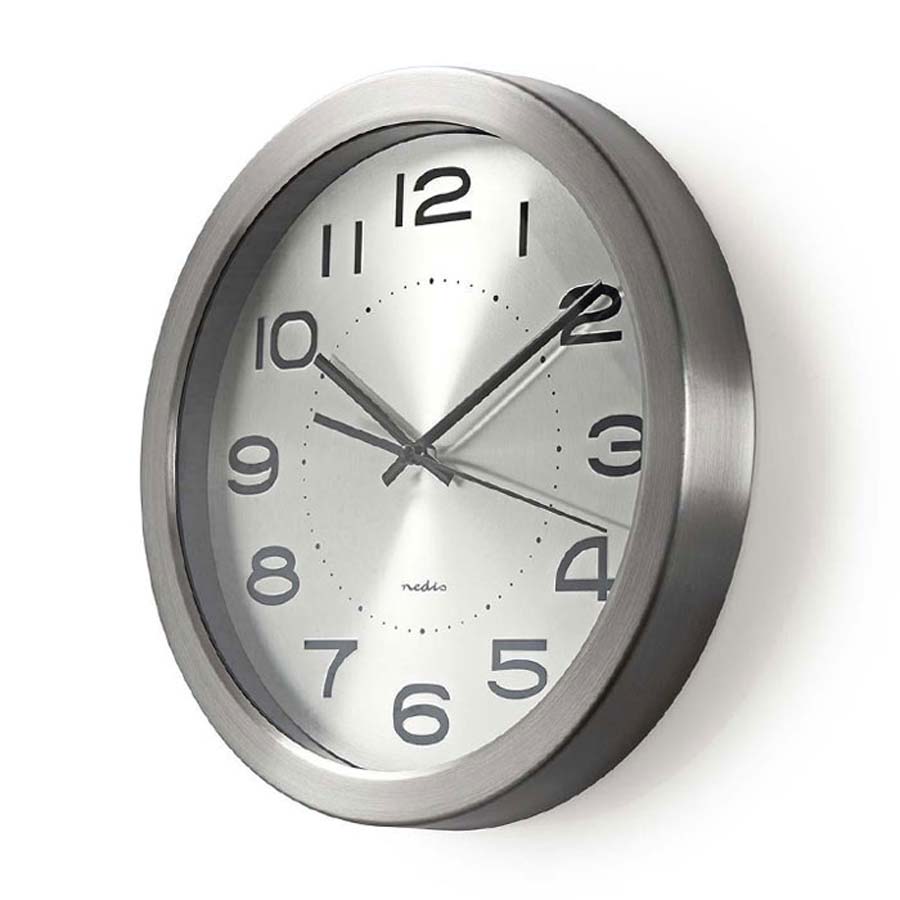 Ρολόι τοίχου από ανοξείδωτο ατσάλι με μεγάλους ευανάγνωστους αριθμούς.