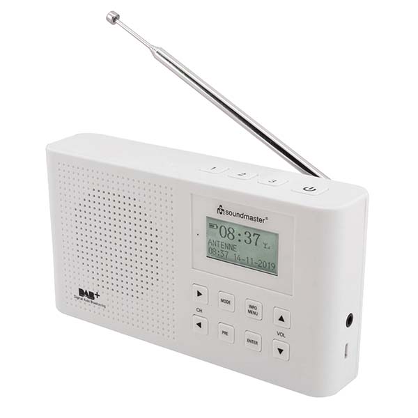 Με αυτό το φορητό ραδιόφωνο Soundmaster DAB160WE μπορείτε να ακούσετε ραδιοφωνικούς σταθμούς DAB + και FM. Αυτό σας δίνει πρόσβαση σε μεγάλο αριθμό ραδιοφωνικών σταθμών. Μπορείτε εύκολα να αποθηκεύσετε τα αγαπημένα σας κανάλια ως προεπιλογές.
