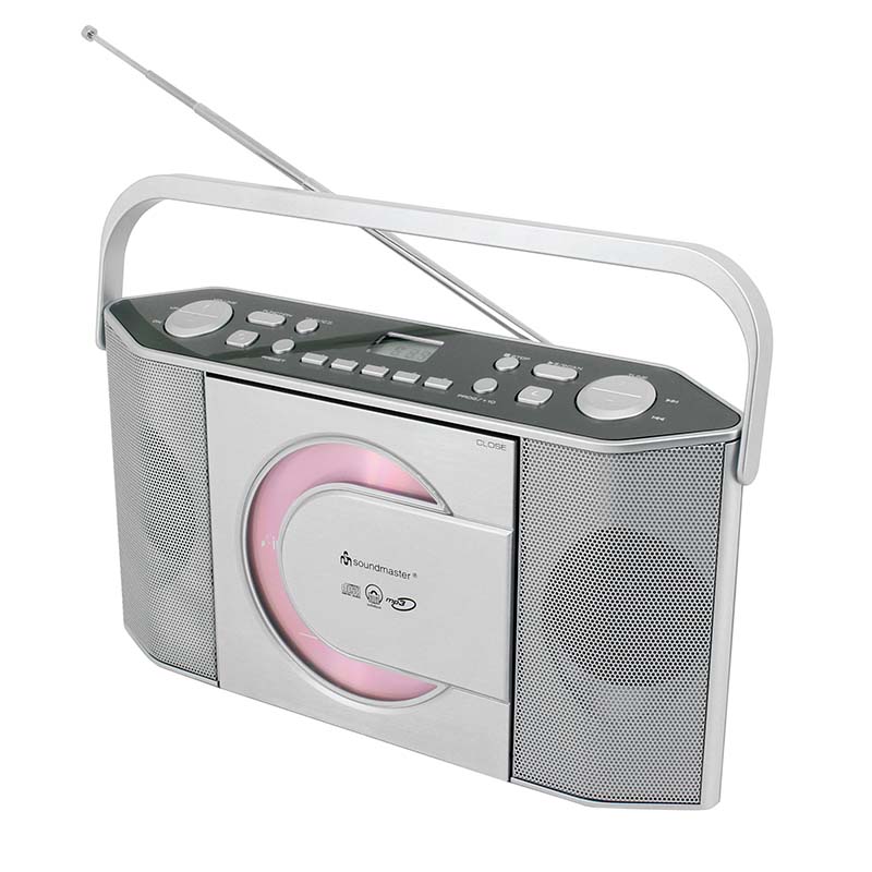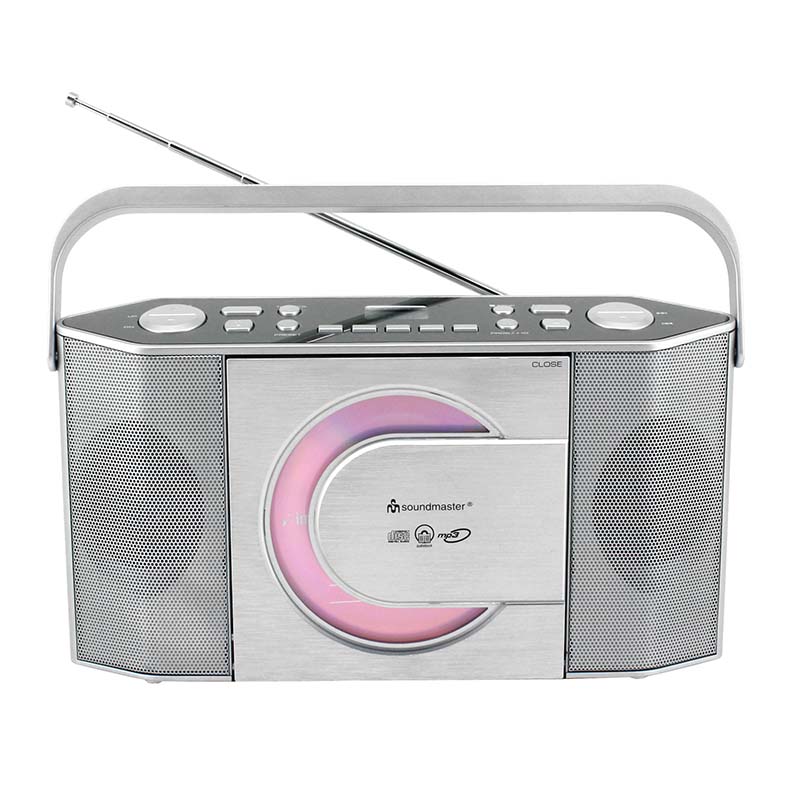 Το ραδιόφωνο Soundmaster RCD1755SI CD / MP3 τραβάει αμέσως τα βλέμματα με τη γωνιακή του σχεδίαση. Τα χειριστήρια του φορητού ραδιοφώνου και της οθόνης LCD δεν είναι τοποθετημένα στο μπροστινό μέρος, αλλά βρίσκονται στο επάνω μέρος του περιβλήματος. Αυτό επιτρέπει ιδιαίτερα άνετη λειτουργία του ραδιοφώνου CD.