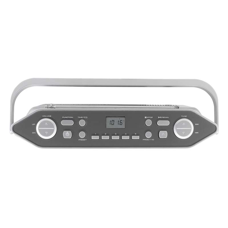 Το φορητό ραδιόφωνο με την πρακτική του λαβή υποστηρίζει τη λειτουργία τόσο του δικτύου όσο και της μπαταρίας και εντυπωσιάζει με τον ισχυρό στερεοφωνικό ήχο του.