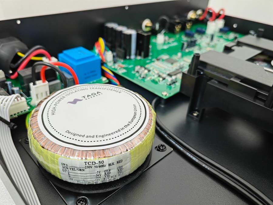 • Υπερμεγέθης τοροειδής μετασχηματιστής ισχύος 35W . • Έξοδοι: 2 αναλογικά (RCA unbalanced και XLR balanced) και 2 ψηφιακά (Optical, Coaxial).