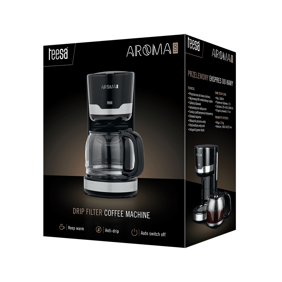 Λαχταράτε λίγο μαύρο καφέ αλλά σας τελειώνουν τα χάρτινα φίλτρα μιας χρήσης; Με το Teesa Aroma 100, θα αποχαιρετήσετε αυτό το πρόβλημα για πάντα! Η συσκευή είναι εξοπλισμένη με μόνιμο φίλτρο – απλώς ξεπλύνετε το και είναι ξανά έτοιμη για χρήση!